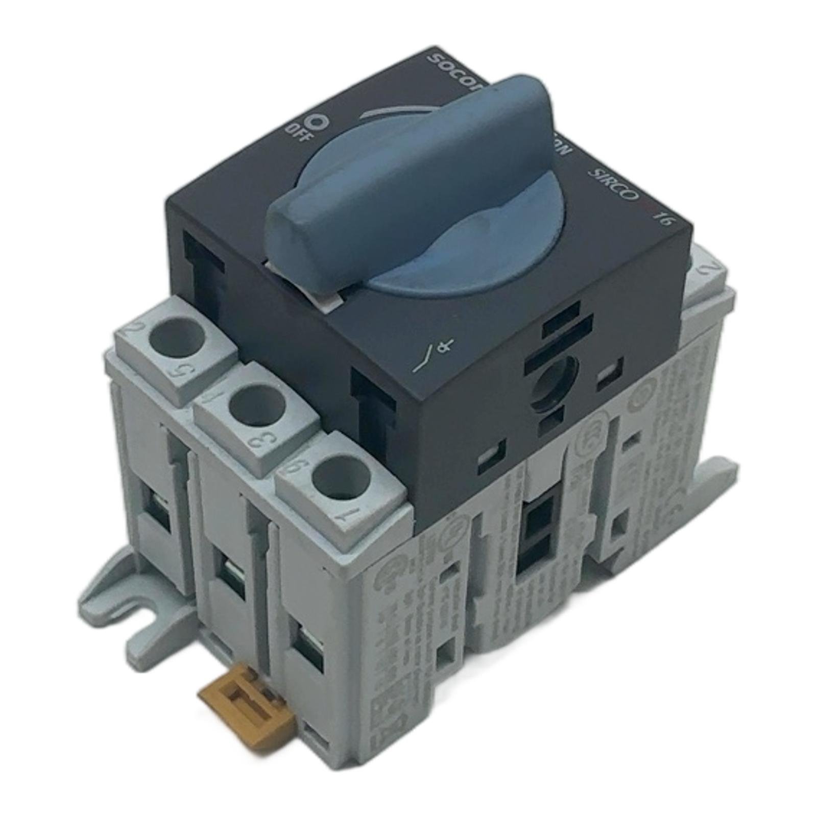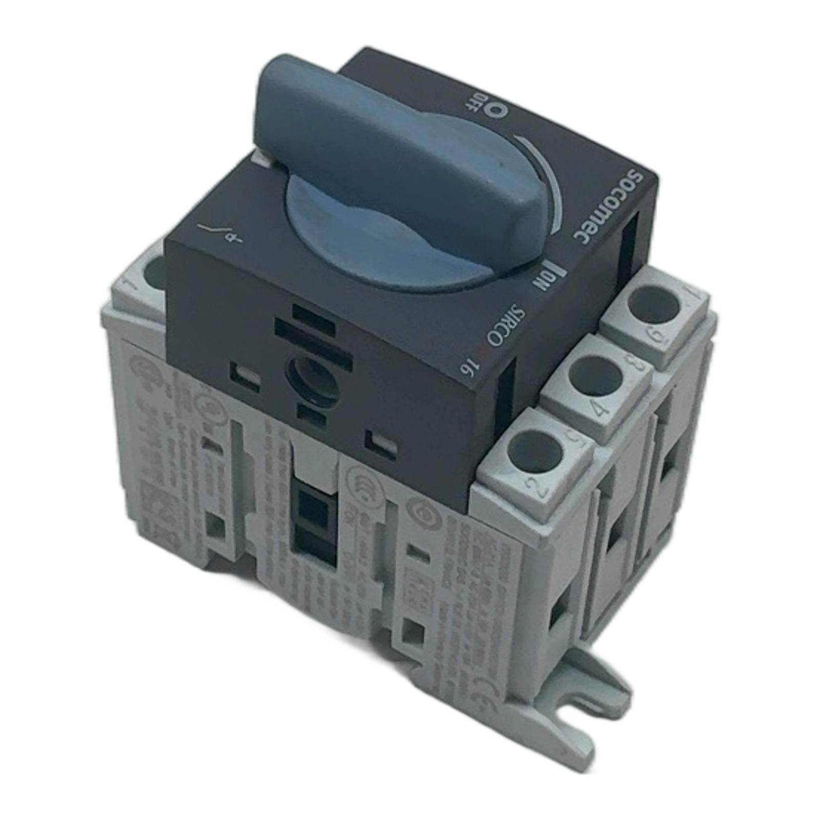 Socomec SIRCO M 16A 3-Pole Switch Disconnector Description The Socomec 22003000 is a modular switch disconnector from the SIRCO M series, engineered for safety and reliability in low-voltage electrical installations. This 3-pole device provides dependable on-load breaking and making, serving as an excellent main switch or motor disconnect. Its compact design allows for easy integration into control panels via DIN rail or direct panel mounting. Specifications Manufacturer: Socomec Series: SIRCO M Part Number: 22003000 Rated Operational Current (Ie): 16A Rated Operational Voltage (Ue): up to 690V AC Number of Poles: 3 Mounting: DIN Rail or Panel Mount Standards: IEC 60947-3, UL, CSA Label Info AC-21A: Ue 690V, Ie 16A, 50/60Hz AC-23A: Ue 415V, Ie 16A, 50/60Hz UL Listed: General purpose switch 16A 600V AC Motor Rating: 5 HP at 240V, 10 HP at 480/600V Application Ideal for use as a local safety isolation switch, main switch in distribution boards, or as a motor disconnect switch in various industrial machinery and commercial building applications. Country of Origin This product is designed by Socomec in France and manufactured in China. CO2 Impact Opting for this component helps avoid the emission of approximately 4.8 kg of CO2 compared to manufacturing a new one. This saving is equivalent to the carbon sequestered by a young tree over several months. Availability This item is in stock and ready for immediate dispatch. Order now from profideals for expert support and fast delivery. FAQ Question?Can this switch be used for motor control applications? Answer:Yes, the Socomec SIRCO M 22003000 is UL listed and rated as suitable for motor disconnect applications. According to the label, it can handle up to 10 HP at 480/600V AC. Question?What type of mounting is this switch designed for? Answer:This switch is designed for versatile mounting. It features integrated clips for standard 35mm DIN rail mounting and also has provisions for direct panel mounting with screws. Question?What is the short-circuit withstand capability of this device? Answer:The label indicates it is suitable for use on circuits capable of delivering up to 65kA rms symmetrical current at 600V AC, provided it is protected by Class J fuses with a maximum rating of 30A (time-delay). profideals is not an authorized distributor, reseller, or representative of the products featured on this website. All product names, trademarks, brands, and logos used on this site are the property of their respective owners. Last Update: Friday, March 13, 2026