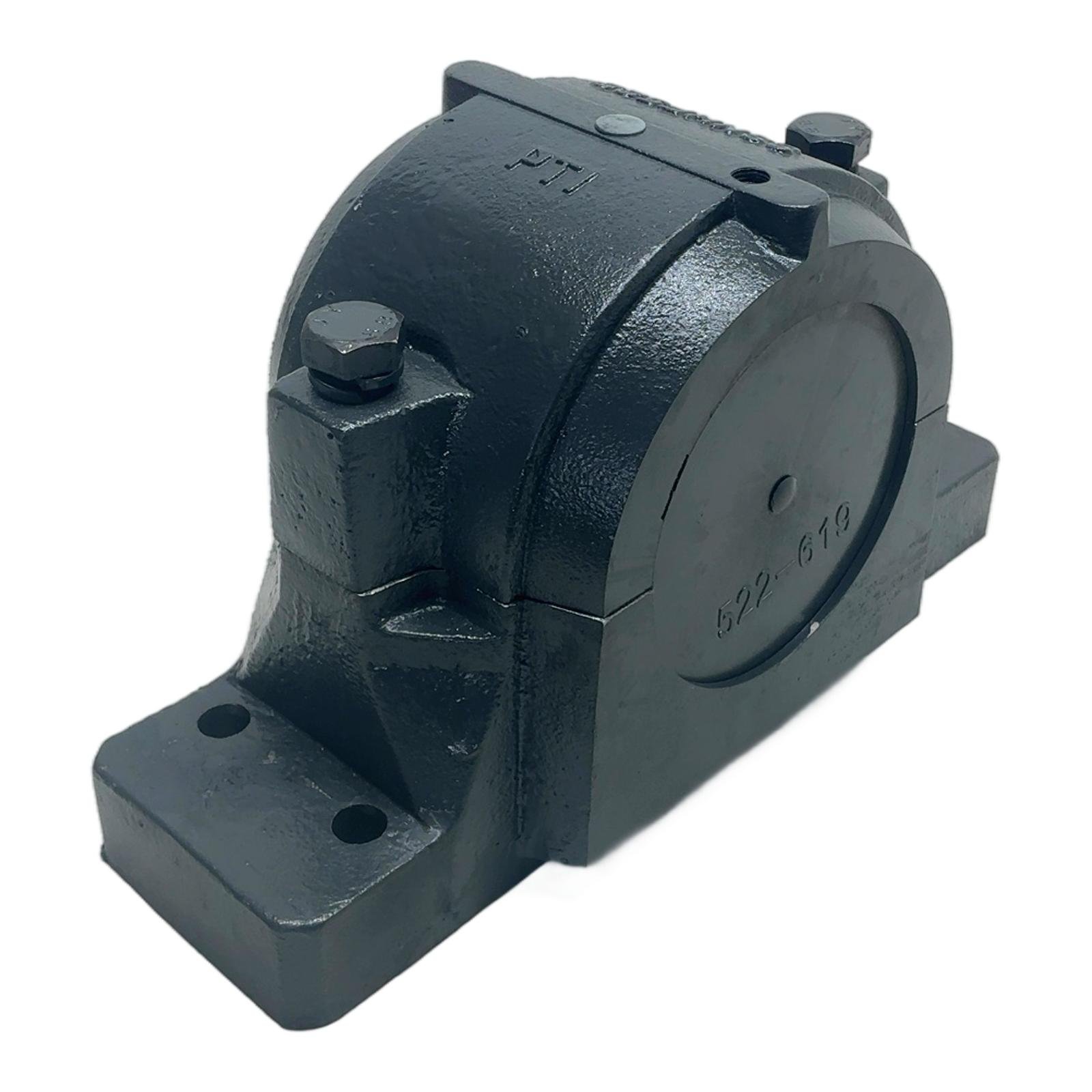 PTI SSNHF522-619 Split Plummer Block Housing Description The PTI SSNHF522-619 is a robust split plummer block housing designed for heavy-duty industrial applications. Its two-piece construction allows for easy installation and maintenance of bearings without requiring the disassembly of the entire shaft assembly. Made from high-grade cast iron, it ensures maximum stability and durability, making it suitable for conveyors, fans, and other rotating machinery. Specifications Manufacturer: PTI Type Number: SSNHF522-619 Shaft Diameter (with Adapter Sleeve): 100 mm Shaft Diameter (Direct Mount): 110 mm Compatible Bearing Series: 22222, 1222, 23222 Housing Material: Cast Iron Mounting: 2-Bolt Base Sealing: Accommodates various seal types (e.g., double-lip seals) Label Info Brand: PTI Model: SSNHF522 619 End Cap: 522-619 Application This housing is ideal for use in material handling systems, agricultural machinery, ventilation systems, and general industrial machinery where reliable shaft support is critical. Country of Origin This product is manufactured in China. CO2 Impact By purchasing this reused item, you contribute to a more sustainable future by avoiding approximately 56 kg of CO2 emissions from the production of a new one. Availability This item is in stock and ready for immediate dispatch. Order now from profideals for expert support and fast delivery. FAQ Question?What is the difference between mounting with an adapter sleeve versus direct mounting on the shaft?Answer: Using an adapter sleeve (like an H322 for this model) allows this housing to fit a 100mm diameter shaft, providing a secure, concentric fit. For direct mounting, the housing is designed for a 110mm shaft that has a uniform diameter for the bearing seat. Question?What type of lubrication is recommended for a bearing in this SSNHF522-619 housing?Answer: This housing is suitable for both grease and oil lubrication and typically features a port for a grease nipple. The specific type of lubricant (e.g., grease grade, oil viscosity) should be selected based on the operating conditions of the installed bearing, such as speed, load, and temperature. Question?Can the seals on this housing be replaced?Answer: Yes, a key benefit of split plummer block housings is ease of maintenance. The seals can be easily replaced by removing the housing cap, without needing to dismount the entire housing from its base, minimizing downtime. profideals is not an authorized distributor, reseller or representative of the products featured on this website. All product names, trademarks, brands and logos used on this site are the property of their respective owners. Last Update: Friday, March 13, 2026
