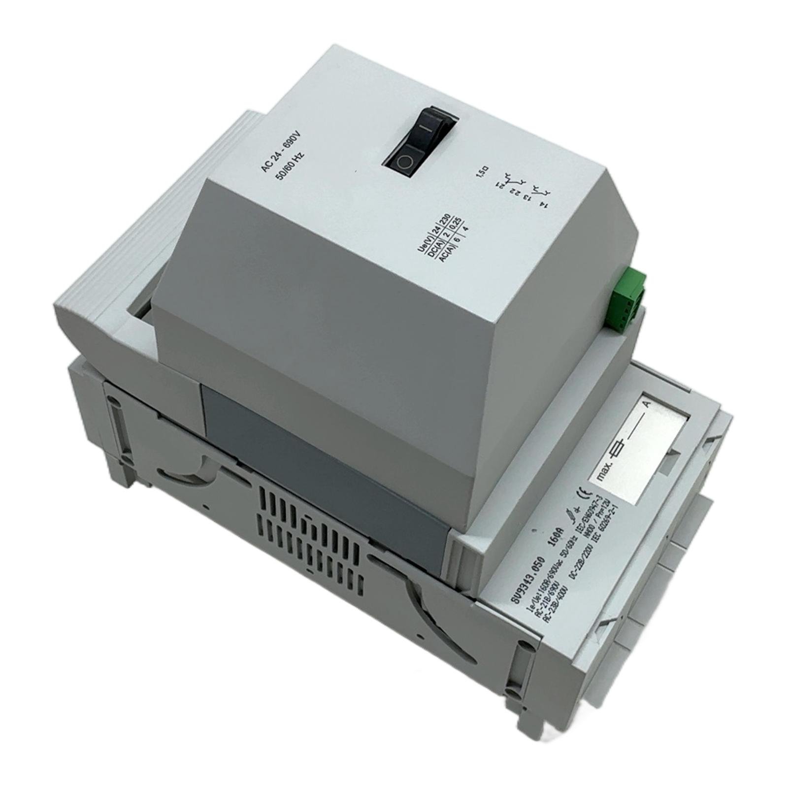 Rittal SV 9343.050 NH Fuse Switch Disconnector Description The Rittal SV 9343.050 is a high-quality NH fuse-switch-disconnector designed for the RiLine60 busbar system. This 3-pole unit is rated for 160 A and accommodates NH fuse links of size 00. It provides robust circuit protection and a safe means of isolation for industrial applications. A key feature is its integrated electromechanical fuse monitoring, which signals the status of the fuses for improved system uptime and maintenance planning. Specifications Manufacturer: Rittal Part Number: SV 9343.050 Product Family: RiLine60 Rated Operational Voltage: 690V AC Rated Current (Ith): 160 A Number of Poles: 3 Compatible Fuse Size: NH 00 Busbar Spacing: 60 mm Features: Electromechanical fuse monitoring (MSU) Connection Type: Box terminal Label Info Model: SV 9343.050 Voltage: AC 24 – 690V, 50/60 Hz Standard: IEC/EN 60947-3 Application This component is ideal for use in industrial power distribution boards, control cabinets, and machinery for protecting motors, transformers, and other electrical loads. Its direct mounting on the RiLine60 busbar system saves installation time and space. Country of Origin Made in Germany. CO2 Impact By choosing this reused component, you are helping to avoid approximately 30.8 kg of CO2 emissions compared to purchasing a new one. Availability This item is in stock and ready for immediate dispatch. Order now from profideals for expert support and fast delivery. FAQ What size NH fuse is compatible with the SV 9343.050?This disconnector is designed specifically for NH fuse-links of size 00, with a maximum rated current of 160 A. How does the electromechanical fuse monitoring (MSU) feature work?The MSU feature uses a plunger system within the fuse to activate a microswitch when a fuse blows. This provides a potential-free contact that can be wired to a PLC or indicator light to signal a fault condition immediately. Can this disconnector be mounted on a standard DIN rail?No, the SV 9343.050 is designed for direct mounting onto a Rittal RiLine60 busbar system with a 60 mm centre-to-centre spacing. It is not compatible with standard DIN rail mounting. profideals is not an authorized distributor, reseller or representative of the products featured on this website. All product names, trademarks, brands and logos used on this site are the property of their respective owners. Last Update: Friday, March 13, 2026
