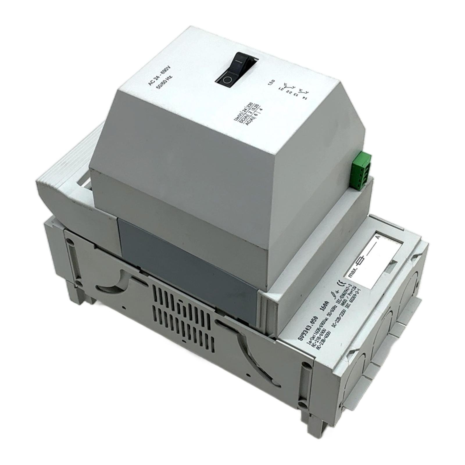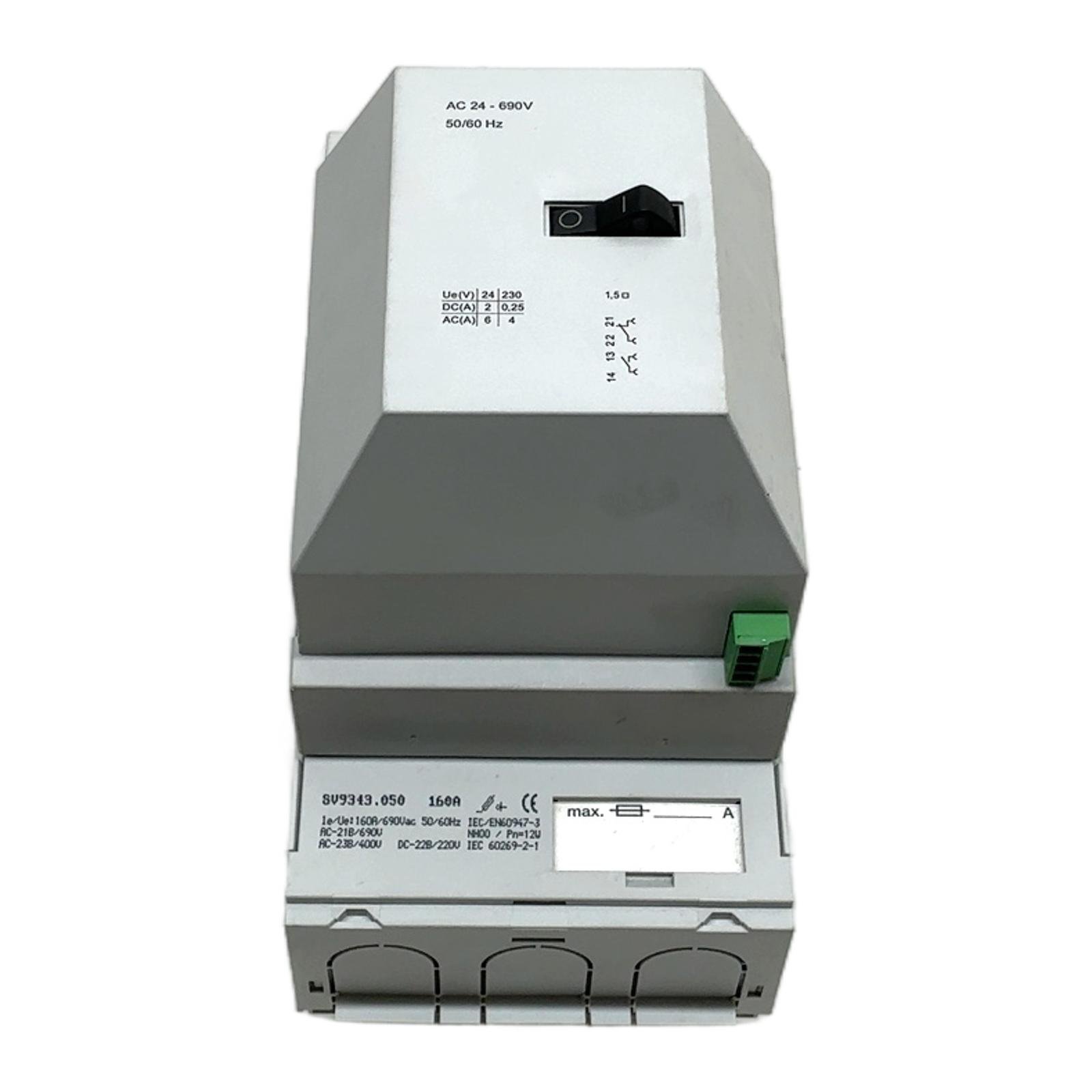 Rittal SV9343.050 3-Pole NH00 Fuse Switch Disconnector Description The Rittal SV9343.050 is a high-quality 3-pole fuse switch disconnector designed for NH size 00 fuses. It provides dependable circuit protection for industrial applications with a rated current of 160A and a maximum voltage of 690V AC. This unit is specifically engineered for seamless integration into Rittal’s RiLine60 busbar systems, offering a safe and space-saving solution for power distribution and control panels. Specifications Manufacturer: Rittal Model: SV9343.050 Rated Operational Current (Ie): 160 A Rated Operational Voltage (Ue): 690V AC, 50/60 Hz Number of Poles: 3 Fuse Size: NH00 Mounting System: Rittal RiLine60 Auxiliary Contact Rating: AC 6A/230V, DC 2A/24V Label Info Type: SV9343.050 Current: 160A Voltage: 160A/690Vac 50/60Hz Standard: IEC/EN60947-3 Utilization Categories: AC-21B/690V, AC-23B/400V, DC-22B/220V Application This component is ideal for use in power distribution boards, machine control panels, and industrial switchgear assemblies where reliable overcurrent protection and a means of disconnection are required. Its design for the RiLine60 system makes it perfect for compact and modular cabinet layouts. Country of Origin Made in Germany. CO2 Impact By purchasing this pre-owned component, you are helping to avoid the emission of approximately 60 kg of CO2. This saving is equivalent to the carbon captured by 3 trees in one year. Availability This item is a tested, used product. Available for immediate dispatch. Order now from profideals for expert support and fast delivery. FAQ What size fuses can be used with the SV9343.050?This unit is specifically designed for NH size 00 (NH00) fuses. Using other sizes is not possible and would be unsafe. Is this fuse switch disconnector suitable for direct mounting on a DIN rail?No, the SV9343.050 is designed for direct mounting on a Rittal RiLine60 busbar system. It features specific connections on the back for this purpose and is not intended for standard DIN rail mounting. Can the auxiliary contacts be changed or modified?The unit comes with integrated auxiliary contacts for monitoring the switch position. While they are factory-installed, Rittal offers various accessories, but modification of the integrated contacts is generally not recommended and should only be performed by qualified personnel. Last Update: Friday, March 13, 2026 profideals is not an authorized distributor, reseller or representative of the products featured on this website. All product names, trademarks, brands and logos used on this site are the property of their respective owners.