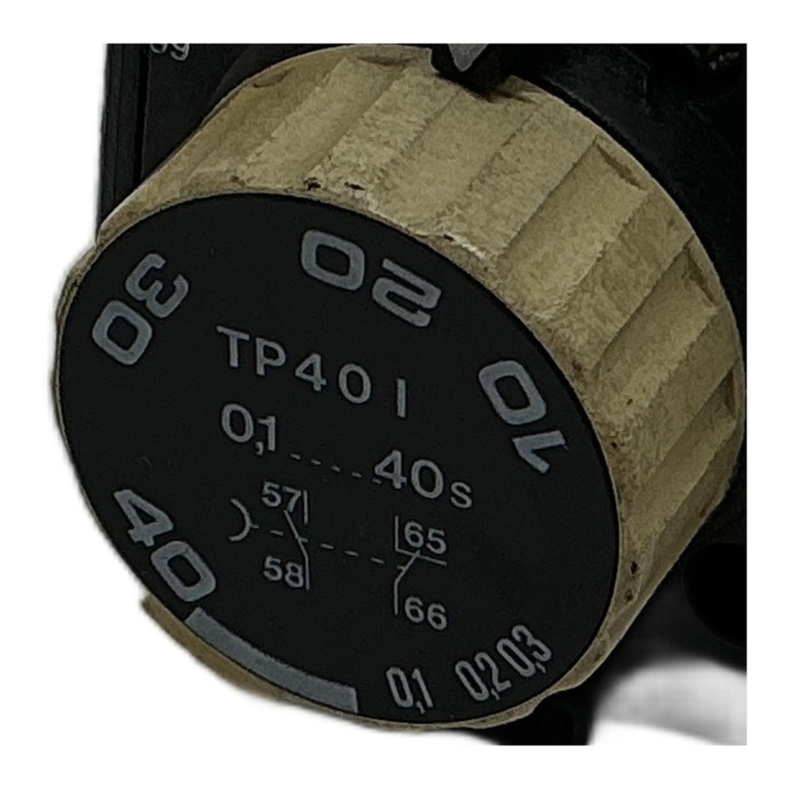 ABB TP401 Electronic ON-Delay Timer Relay Description The ABB TP401 is an electronic timer designed for direct front-mounting on ABB A-line and B-line contactors. It provides a reliable ON-delay function with a time setting range from 1 to 40 seconds, adjustable via the top-mounted dial. This compact unit is ideal for applications requiring staggered motor starting or other timed control sequences. Specifications Manufacturer: ABB Model: TP401 Function: ON-Delay Timer Time Range: 1 – 40 seconds Mounting: Direct front mount on contactor Compatibility: ABB A-line and B-line contactors Application This timer is commonly used in motor control centers (MCCs), industrial automation panels, and machinery control systems for tasks such as star-delta starting, sequential process control, and load timing. Country of Origin This product is typically manufactured in Sweden. CO2 Impact Opting for this refurbished ABB TP401 timer instead of a new one prevents the emission of approximately 2.8 kg of CO2. This saving is comparable to the emissions from driving a standard passenger car for 14 kilometers. Availability This item is a discontinued but available surplus part. Limited stock. Order now from profideals for expert support and fast delivery. FAQ What contactor series is this timer compatible with?The TP401 is primarily designed for the ABB A-line contactor series (e.g., A9 to A300) and certain older B-line contactors. It is not compatible with modern AF-series contactors. What does ‘ON-delay’ function mean?An ON-delay timer, also known as delay on make, initiates its timing cycle when control voltage is applied. The output contacts change state only after the preset time has elapsed and remain in that state until the control voltage is removed. What are the supported control voltages for this timer?The TP series timers are known for their wide-range voltage inputs. While you must always verify the specific label on your unit, they typically support multiple AC/DC voltages such as 24V, 48V, 110-127V, and 220-240V. Friday, March 13, 2026 profideals is not an authorized distributor, reseller or representative of the products featured on this website. All product names, trademarks, brands and logos used on this site are the property of their respective owners. The depiction, description or sale of products featuring these names, trademarks, brands and logos is for identification purposes only and is not intended to indicate any affiliation with or authorization by any rights holder.