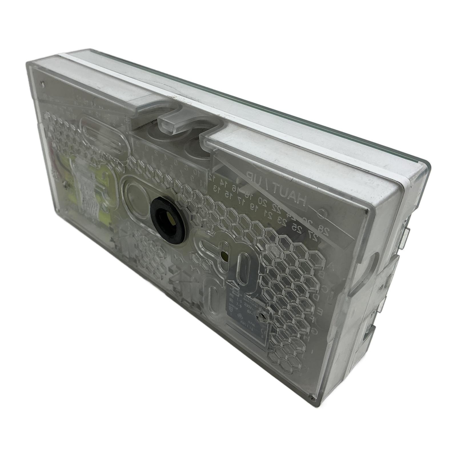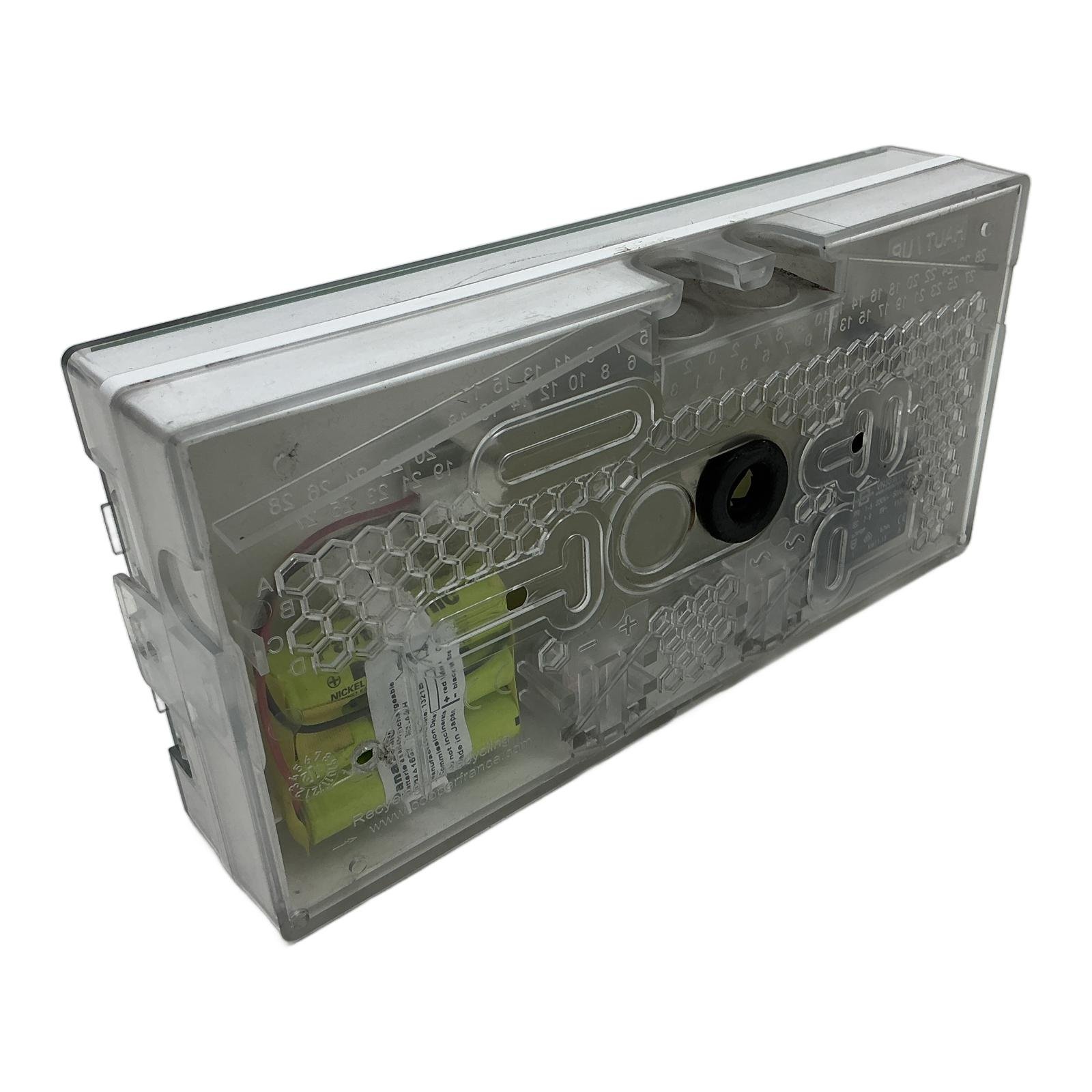 Luminox Emergency Exit Sign Light ULTRALED 45 – 16025 C Description This is a Luminox ULTRALED 45, a self-contained emergency lighting unit (BAES) designed for evacuation route signalization. With a light output of 45 lumens and a 1-hour autonomy, this device ensures clear visibility during power outages. Its robust IP43/IK08 rated housing makes it suitable for various commercial and industrial environments. Specifications Power Supply: 230V AC, 50-60Hz Power Consumption: 1.4W Luminous Flux: 45 lumens Autonomy: 1 hour IP Rating: IP43 IK Rating: IK08 Battery Type: Ni-Cd (included) Certification: NF, AEAS Label Info Brand: Luminox (Cooper) Model: ULTRALED 45 – 16025 C Part Number: T09001 Application Ideal for marking emergency exits and escape routes in public buildings, offices, schools, and industrial facilities in compliance with safety regulations. Country of Origin Information not available. CO2 Impact By choosing this refurbished component, you save approximately 20.0 kg of CO2. This is equivalent to avoiding the emissions of a 100 kilometer car journey. Availability This product is an obsolete model but is available directly from our stock. It is perfect for replacing a defective unit without needing to upgrade the entire installation. Order now from profideals for expert support and fast delivery. FAQ What is the condition of the included Ni-Cd batteries?This is a used unit, and the batteries are original. We recommend testing the battery autonomy upon installation and replacing them if they do not meet the required 1-hour duration to ensure compliance with safety standards. Is this luminaire a ‘maintained’ or ‘non-maintained’ type?The ‘X1AB’ designation on the label indicates it is a switchable unit. It can be configured for maintained operation (always on) or non-maintained operation (only on during a power failure), depending on the wiring configuration during installation. What does the ‘BAES’ certification mean?BAES stands for ‘Bloc Autonome d’Eclairage de Securite,’ which is a French standard for self-contained emergency lighting units. It certifies that the device has its own power source (batteries) and will automatically illuminate an escape route in the event of a mains power failure. Last Update: Friday, March 13, 2026 profideals is not an authorized distributor, reseller or representative of the products featured on this website. All product names, trademarks, brands and logos used on this site are the property of their respective owners. The depiction, description or sale of products featuring these names, trademarks, brands and logos is for identification purposes only and is not intended to indicate any affiliation with or authorization by any rights holder.