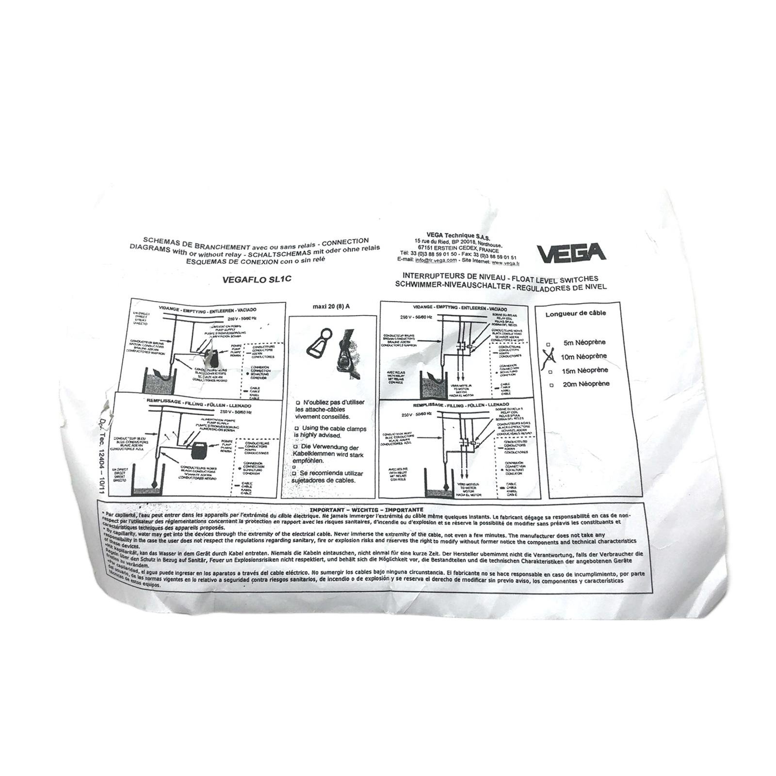 VEGA VEGAFLO S L1 C Float Level Switch Description The VEGAFLO S L1 C is a highly reliable float switch for point level detection in a wide range of liquids. This model, with part number VGAFLOSL1C10, is equipped with a 10-meter long, robust Neoprene cable, suitable for demanding industrial applications. It utilizes a mechanical microswitch with a changeover contact, providing flexible control for both pump filling and emptying operations. Specifications Manufacturer: VEGA Model: VEGAFLO S L1 C Part Number: VGAFLOSL1C10 Function: Point Level Detection Cable Length: 10 meters Cable Type: H07RN-F 3G1mm2 Neoprene Switching Contact: Changeover (SPDT) microswitch Maximum Voltage: 250V AC Maximum Current: 20 (8) A Float Material: Polypropylene (PP) Label Info P/N: VGA FLOSL1 C10 Weight: 1.314 Kg Application Ideal for level control in water treatment plants, pump stations, and storage tanks. Its simple and effective design ensures maintenance-free operation for controlling pumps, valves, or alarms. Country of Origin Manufactured in Germany. CO2 Impact Choosing this reused component saves an estimated 52.56 kg of CO2 compared to a new one, contributing to a more sustainable industrial operation. Availability This item is in stock and ready for immediate dispatch. Order now from profideals for expert support and fast delivery. FAQ What is the function of the changeover (SPDT) contact in this VEGAFLO S L1 C switch?The changeover, or Single Pole Double Throw (SPDT), contact provides three connection points: common, normally open (NO), and normally closed (NC). This versatility allows you to configure the switch to either activate a circuit when the liquid level rises (e.g., to stop a filling pump) or activate it when the level falls (e.g., to start a filling pump or trigger a low-level alarm), all with a single device. What does the cable marking H07RN-F 3G1mm2 signify?This is a harmonized European cable code. ‘H07RN-F’ indicates a heavy-duty, rubber-insulated and sheathed, flexible cable rated for up to 750V. ‘3G’ means it has three cores, including a green/yellow protective earth conductor. ‘1mm2’ refers to the cross-sectional area of each conductor, which is suitable for the specified switching current. This type of cable is chosen for its durability and resistance to oils, chemicals, and mechanical stress. How is the switching point adjusted with this float switch?The switching point is determined by the free length of the cable between the fixation point and the float itself. A longer free cable results in a larger hysteresis (difference between switch-on and switch-off levels). For precise control, the cable is typically fixed at a specific height, and a counterweight (the black component on the cable) is used to define the pivot point, allowing for more stable operation, especially in turbulent liquids. profideals is not an authorized distributor, reseller or representative of the products featured on this website. All product names, trademarks, brands and logos used on this site are the property of their respective owners. Last Update: Friday, March 13, 2026