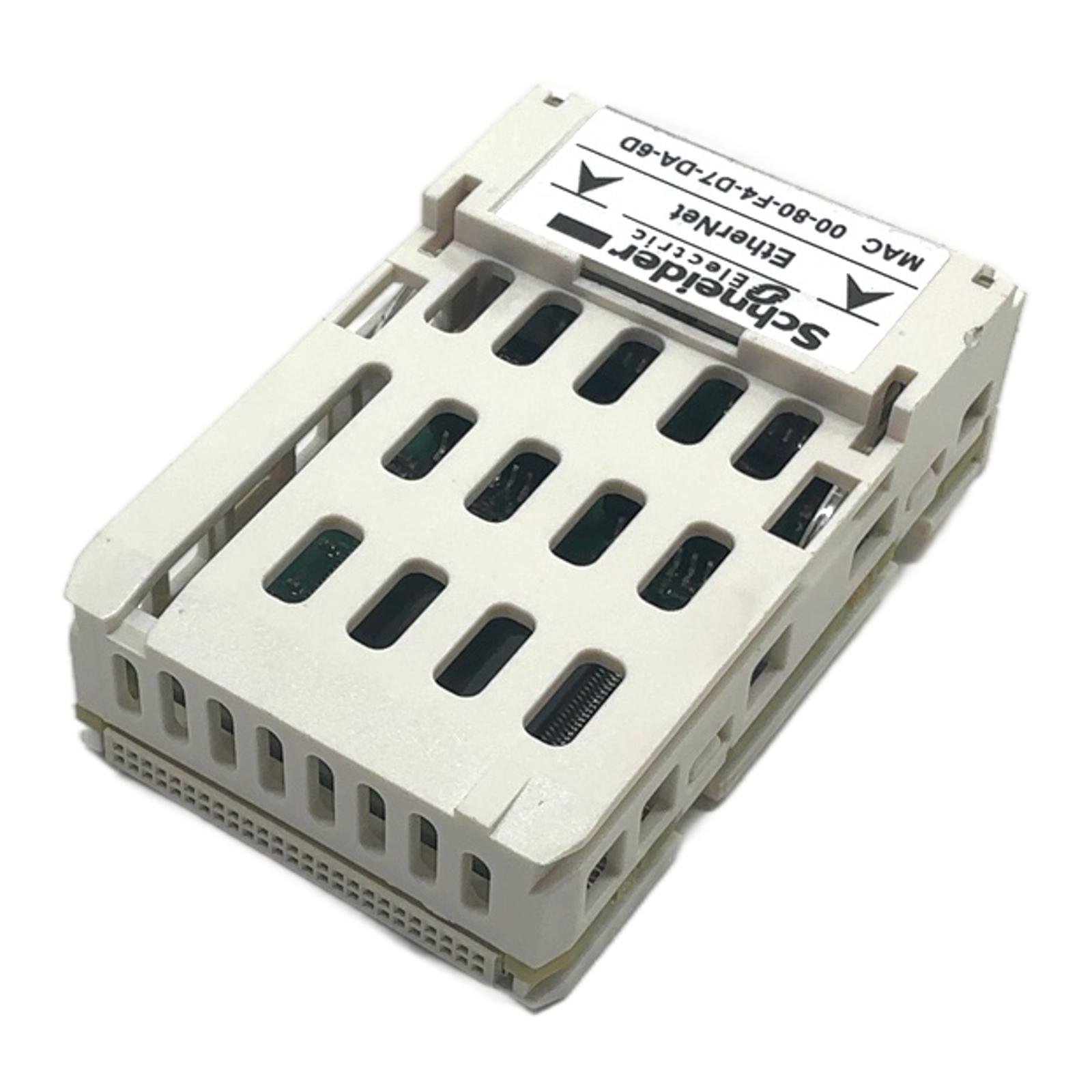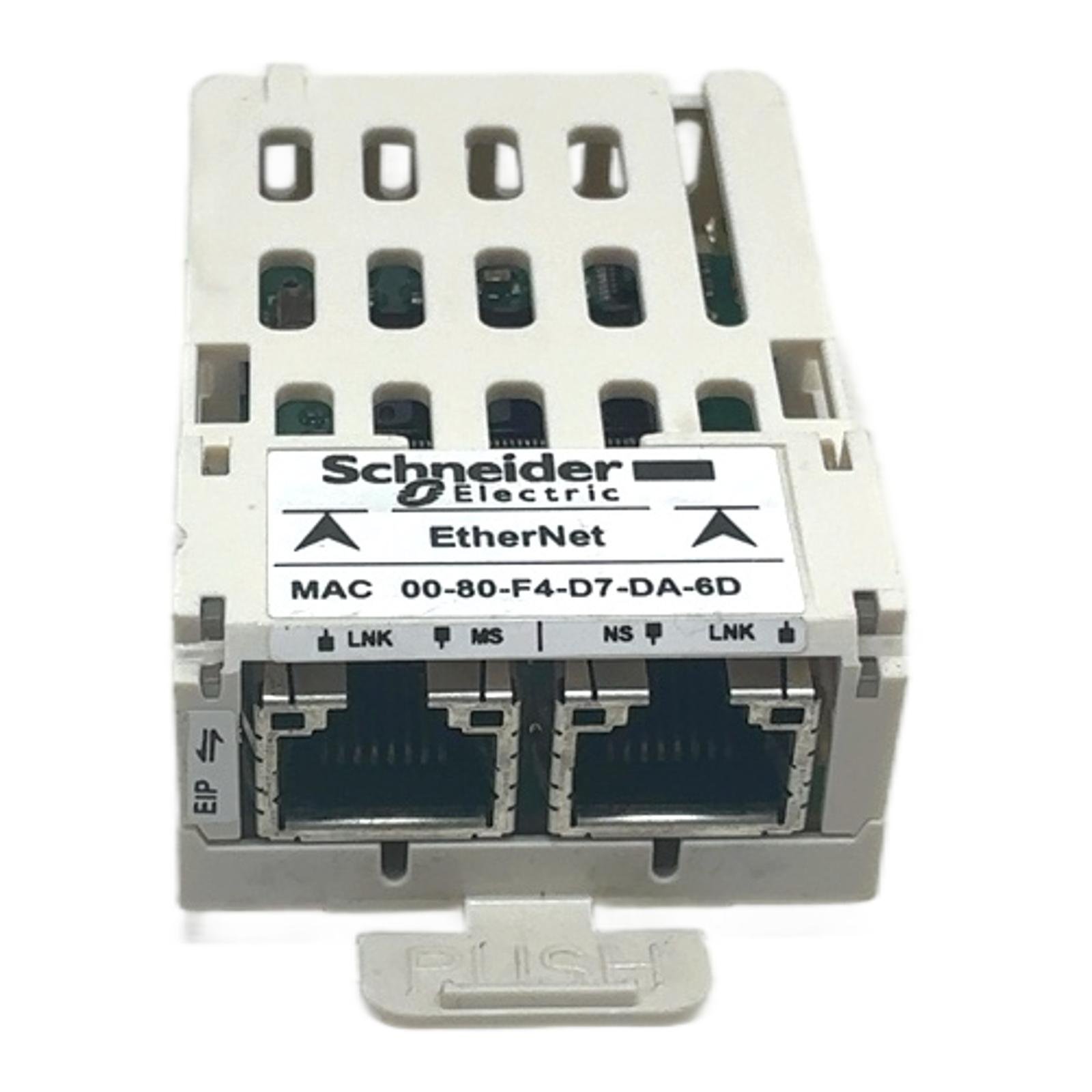 Schneider Electric VW3A3616 Ethernet Communication Module Description The VW3A3616 is a robust Ethernet communication module from Schneider Electric, designed to seamlessly integrate Altivar variable speed drives into industrial Ethernet networks. This option card supports both EtherNet/IP and Modbus TCP protocols, providing flexible and high-speed communication for monitoring and control applications. With its dual-port design, it allows for simple daisy-chain connections, reducing wiring complexity and cost. Specifications Manufacturer: Schneider Electric Part Number: VW3A3616 Product Range: Altivar Product Type: Communication Module Communication Protocol: EtherNet/IP, Modbus TCP Connectors: 2 x RJ45 Transmission Rate: 10/100 Mbit/s Compatibility: Altivar 32, Altivar 61, Altivar 71 Label Info MAC Address: 00-80-F4-D7-DA-6D Version: V1.17IE04 Serial Number: C02745C3 Application This module is ideal for applications in manufacturing, material handling, packaging, and process control where Altivar drives need to be connected to a PLC, HMI, or SCADA system via an Ethernet network. Country of Origin Made in China. CO2 Impact Opting for this pre-owned module over a new one saves approximately 3.0 kg of CO2, contributing to a more sustainable industrial environment. Availability This item is an obsolete but essential component for maintaining existing systems. Stock is limited. Order now from profideals for expert support and fast delivery. FAQ What Altivar drive series is the VW3A3616 compatible with?The VW3A3616 is specifically designed for use with the Altivar 32 (ATV32), Altivar 61 (ATV61), and Altivar 71 (ATV71) series of variable speed drives. What is the function of the LEDs (LNK, MS, NS) on this module?The LEDs provide network status diagnostics. LNK (Link) indicates an active physical connection. MS (Module Status) shows the overall health of the module. NS (Network Status) indicates the state of the IP network communication. Does this module support both EtherNet/IP and Modbus TCP protocols?Yes, the VW3A3616 is a dual-protocol module that supports both EtherNet/IP for integration with Rockwell/Allen-Bradley systems and Modbus TCP, a widely used open protocol. Last Update: Friday, March 13, 2026 profideals is not an authorized distributor, reseller or representative of the products featured on this website. All product names, trademarks, brands and logos used on this site are the property of their respective owners.
