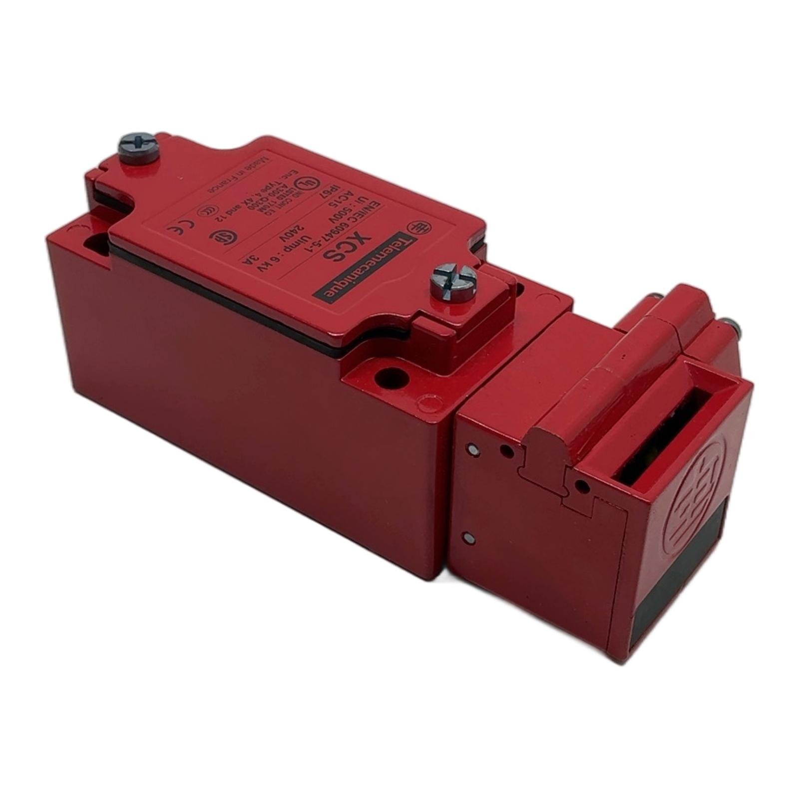Telemecanique XCSB701 Safety Interlock Switch Description The Telemecanique XCSB701 is a robust safety interlock switch designed for monitoring machine guards and access panels in industrial automation systems. Part of the Preventa Safety detection range, this switch ensures that machinery enters a safe state when protective guards are opened. Its metal (Zamak) construction provides high durability for demanding environments. Specifications Manufacturer: Telemecanique Model: XCSB701 Contacts: 2 Normally Closed (NC) + 1 Normally Open (NO) Contact Operation: Slow-break, break before make Rated Insulation Voltage (Ui): 500V Rated Impulse Withstand Voltage (Uimp): 6 kV AC15 Utilization Category: 3A at 240V AC Protection Rating: IP67, dust and water tight Enclosure Type: Type 4, 4X, 12 Cable Entry: 1 tapped entry for Pg 13.5 gland Body Material: Zamak Label Info Standards: EN/IEC 60947-5-1 Certifications: UL Listed (170M), CSA, CE Application This switch is ideal for use in packaging, material handling, robotics, and manufacturing applications where guard monitoring is critical for operator safety. It is suitable for use in high-level safety circuits when combined with an appropriate safety relay or PLC. Country of Origin Made in France. CO2 Impact By purchasing this pre-owned switch, you help avoid the 18.0 kg of CO2 emissions associated with manufacturing a new one, contributing to a more sustainable industrial sector. Availability This item is in stock and ready for immediate dispatch. Order now from profideals for expert support and fast delivery. FAQ What type of actuator key is required for the XCSB701?The XCSB701 is designed to be used with XCSZ series actuators from Telemecanique, such as the XCSZ01, XCSZ02, or XCSZ03, depending on the application’s mounting and alignment needs. The actuator must be ordered separately. What does the ‘slow-break, break before make’ contact operation mean?’Slow-break’ means the contact state changes in direct proportion to the actuator’s speed. ‘Break before make’ is a safety feature ensuring that the normally closed (NC) safety contacts are fully opened before the normally open (NO) auxiliary/signaling contact closes, guaranteeing a safe state signal. Can this switch be used in a Category 4, PL e safety circuit according to ISO 13849-1?Yes, when correctly integrated into a safety circuit with a suitable safety monitoring module (e.g., a Preventa XPS safety relay) and dual-channel wiring, the XCSB701 can be used in applications requiring up to Category 4, Performance Level e (PL e). profideals is not an authorized distributor, reseller or representative of the products featured on this website. All product names, trademarks, brands and logos used on this site are the property of their respective owners. Last Update: Friday, March 13, 2026