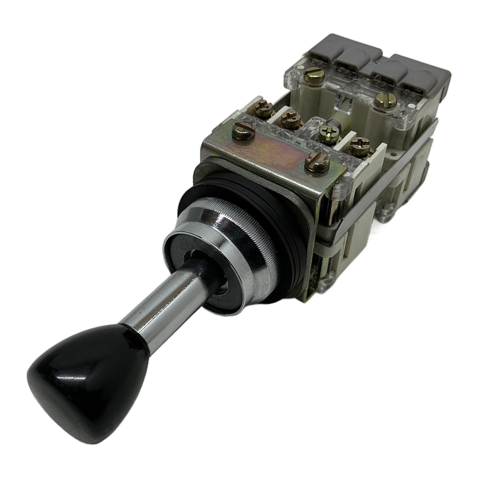 Telemecanique XD2 AC232 Joystick Controller Description The Telemecanique XD2 AC232 is a high-quality joystick controller designed for reliable performance in demanding industrial environments. As part of the Harmony Style 4 series, it features a standard 22mm mounting diameter for easy panel integration. This model provides 2-directional control with a spring-return mechanism, ensuring the lever automatically returns to the neutral position for safety. It is an ideal solution for controlling motors, hoists, cranes, and other automated machinery. Specifications Manufacturer: Telemecanique Type: XD2 AC232 Series: Harmony Style 4 (XD2) Control Type: 2-Direction, Momentary Return Mechanism: Spring Return to Center Mounting Diameter: 22 mm Contact Configuration: 1 Normally Open (NO) per direction Enclosure Material: Metal and Plastic Label Info Brand: Telemecanique Model: XD2 AC232 Origin: France Date Code: 0611 (June 2006) Application This joystick controller is commonly used in material handling, industrial automation, and construction machinery for precise manual control of movement along two axes. Country of Origin Made in France. CO2 Impact Opting for this component saves approximately 12 kg of CO2 emissions compared to manufacturing a new one, supporting a more sustainable industrial ecosystem. Availability This is an obsolete item but available from our stock as New Old Stock (NOS) in its original packaging. Limited quantity available. Order now from profideals for expert support and fast delivery. FAQ What is the mounting hole diameter for the XD2 AC232?The joystick requires a standard 22 mm panel cutout for mounting. Is this a momentary or maintained action joystick?This is a momentary action controller, also known as spring return. The lever returns to the central (neutral) position when released. Can the contact blocks be replaced or changed on this model?Yes, the contact blocks on the Harmony Style 4 (XD2) series are modular and can be removed or replaced to alter the electrical configuration, provided the replacement blocks are compatible with the XD2 system. profideals is not an authorized distributor, reseller or representative of the products featured on this website. All product names, trademarks, brands and logos used on this site are the property of their respective owners. Last Update: Friday, March 13, 2026