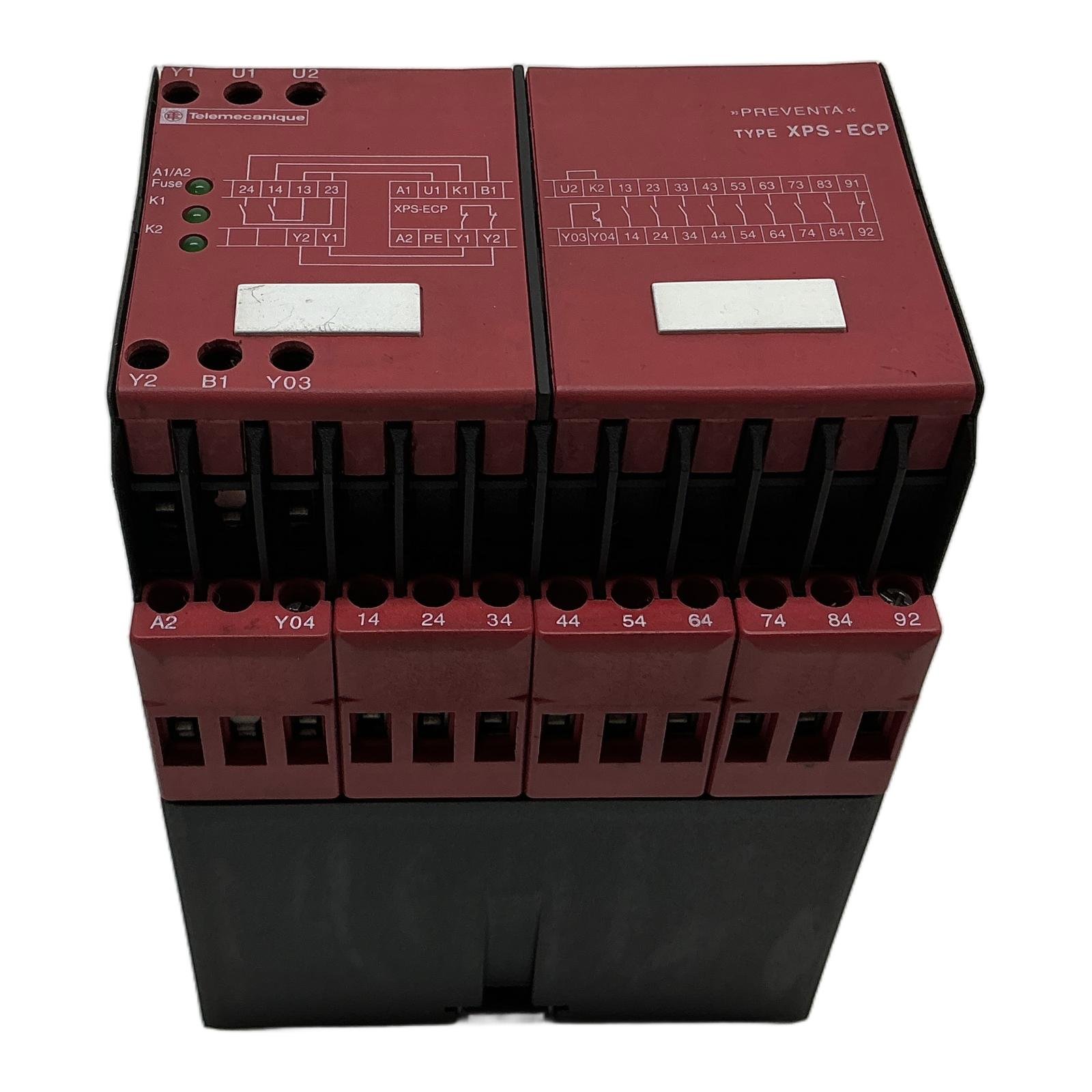 Schneider Electric Preventa XPS-ECP Safety Module Description The Schneider Electric XPSECP5131 is a robust and reliable safety module from the Preventa family. Designed for monitoring safety-critical applications, this configurable module is ideal for implementing functions such as two-hand control monitoring and light curtain supervision. It operates on a versatile 24V AC/DC power supply, making it suitable for a wide range of industrial control panels. Specifications Manufacturer: Schneider Electric Brand: Telemecanique Series: Preventa Type: XPS-ECP Part Number: XPSECP5131 Power Supply: 24V AC (+10%/-20%), 24V DC (+/-20%) Application: Two-hand control and light curtain monitoring Safety Level: Up to Cat. 4 EN 954-1 / PL e ISO 13849-1 Label Info Ref.: XPSECP5131 AC15 B300 / DC13 24V/1.5A (Contacts 13/14..83/84) AC15 C300 / DC13 24V/1.2A (Contact 91/92) Standard: IEC 60947-5-1 Application This module is specifically designed for machine safety circuits where operator protection is paramount. It is commonly used in manufacturing, packaging, and material handling systems to ensure compliance with international safety standards. Country of Origin This product is made in Indonesia. CO2 Impact By choosing this pre-owned safety module, you are avoiding the production of a new one, saving an estimated 20.0 kg of CO2. This is equivalent to the emissions of driving an average car for 100 kilometers. Availability This is an obsolete item but is available from our stock. Order now from profideals for expert support and fast delivery. FAQ How can I interpret the LED diagnostics on the front of the XPSECP5131?The LEDs provide real-time status information. Typically, a green ‘POWER’ or ‘A1/A2’ LED indicates the unit is powered. ‘K1’ and ‘K2′ LEDs indicate the status of the internal safety relays (On=Closed, Off=Open). Flashing or red LEDs can indicate a fault condition, such as a channel discrepancy or an internal error. Refer to the product’s technical manual for a detailed list of diagnostic codes. Can this module be used to achieve a Category 4 / PLe safety level according to EN ISO 13849-1?Yes, when correctly integrated into a safety circuit with appropriate dual-channel inputs (e.g., from an E-stop button or light curtain) and proper wiring practices, the XPSECP5131 is designed to meet the requirements for Safety Category 4 and Performance Level ‘e’ (PLe) as defined by EN ISO 13849-1. What is the difference between the AC-15 and DC-13 contact ratings specified on the label?These are utilization categories that define the current-making and breaking capacity of the relay contacts for specific types of loads. AC-15 is for controlling AC electromagnetic loads (like contactor coils), while DC-13 is for controlling DC electromagnets. The different current ratings (1.5A vs 1.2A) reflect the contact’s ability to handle these different electrical load types safely. profideals is not an authorized distributor, reseller, or representative of the products featured on this website. All product names, trademarks, brands, and logos used on this site are the property of their respective owners. Last Update: Friday, March 13, 2026