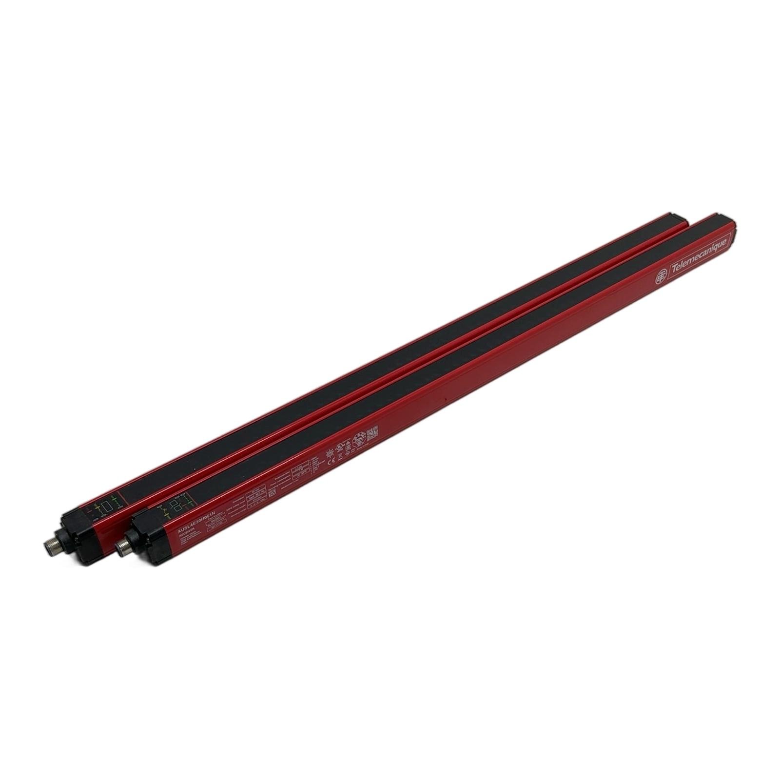 Telemecanique XUSL4E30H061N Safety Light Curtain Set Description This is a Telemecanique Preventa XUSL4E series Type 4 safety light curtain, model XUSL4E30H061N. The set includes both the transmitter and receiver units. It is engineered for high-risk applications requiring robust personnel protection, compliant with SIL 3 and PLe safety levels. With a resolution of 30mm, it is specifically designed for hand protection, and its 610mm protected height makes it suitable for a wide range of machine guarding applications. Specifications Manufacturer: Telemecanique (Schneider Electric) Model: XUSL4E30H061N Product Type: Safety Light Curtain, Type 4 Resolution: 30 mm (Hand Protection) Protected Height: 610 mm Sensing Range: 0 to 12 meters Number of Beams: 31 Response Time: 9.6 ms Supply Voltage: 24V DC +/- 20% Connection: M12 connector Label Info Part Number: XUSL4E30H061N EAN: 3389119618342 Date Code: 2020-W11 Application Ideal for ensuring safety around presses, packaging machines, assembly lines, robotic cells, and other industrial equipment where access to hazardous areas needs to be monitored and controlled. Country of Origin Made in Italy. CO2 Impact By choosing this pre-owned unit, you are preventing the emission of approximately 33 kg of CO2. This saving is comparable to the emissions from driving a standard car for 165 kilometers, making it a sustainable choice for your operations. Availability This item is in stock and ready for immediate dispatch. It is a new-in-box item, where the packaging has been opened for verification. Order now from profideals for expert support and fast delivery. FAQ What is the difference between a Type 2 and a Type 4 safety light curtain like this one?A Type 4 light curtain, like the XUSL4E30H061N, offers a higher level of safety integrity (SIL 3 / PLe). It has more comprehensive self-checking and fault detection capabilities compared to a Type 2 curtain, making it suitable for high-risk applications where a failure could lead to serious injury. What does the 30mm resolution signify for this device?The 30mm resolution means the light curtain is designed for hand protection. It can detect an object, such as a hand, that is 30mm in diameter or larger, anywhere within the 610mm protected height. This resolution is critical for calculating the safe mounting distance from the hazard zone. Can this light curtain be used for muting applications?Yes, the Telemecanique Preventa XUSL4E series supports muting functionality when used with an appropriate safety controller or module. Muting allows for the temporary, automatic suspension of the safety function to allow materials to pass through the protected area, for example on a conveyor belt, without tripping the safety circuit. Last Update: Friday, March 13, 2026 profideals is not an authorized distributor, reseller or representative of the products featured on this website. All product names, trademarks, brands and logos used on this site are the property of their respective owners.